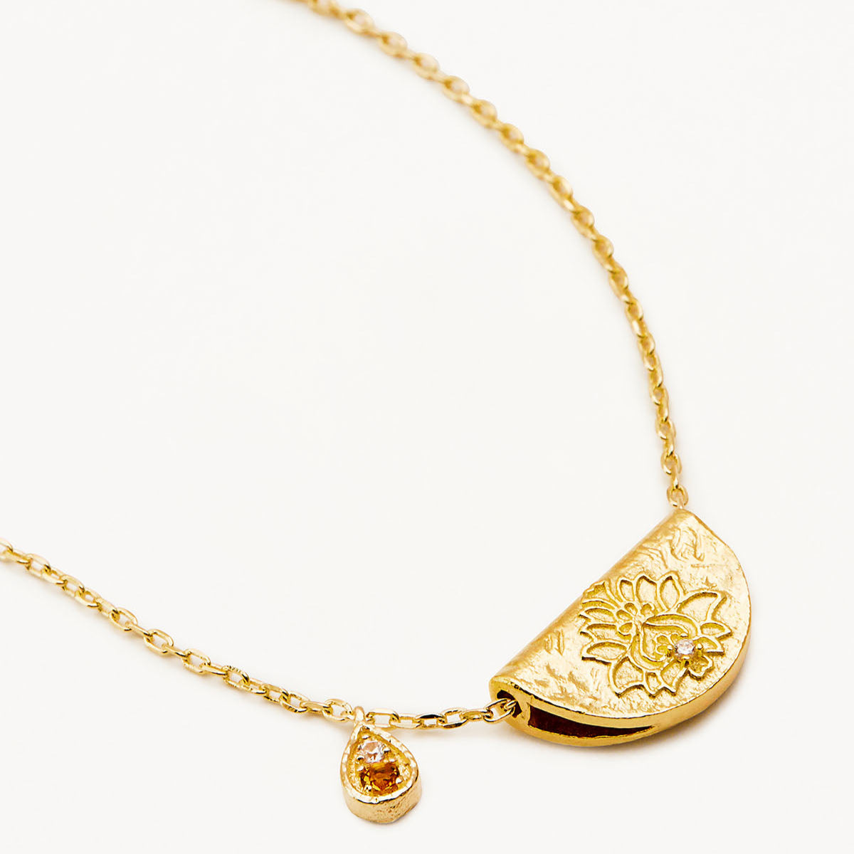 By Charlotte Lotus Birthstone Necklace (November - Citrine), Gold