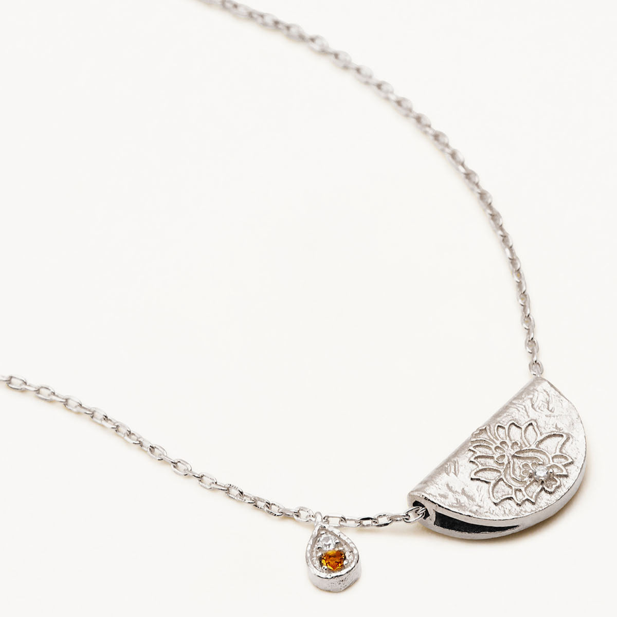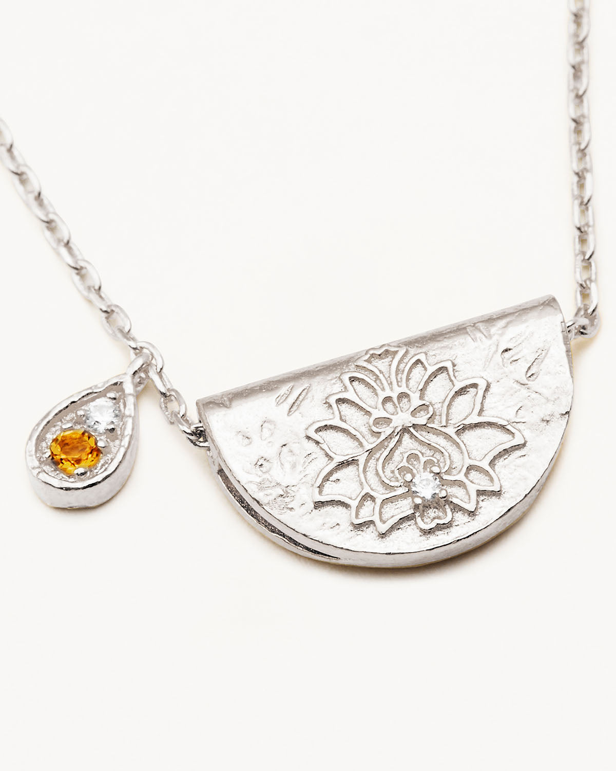 By Charlotte Lotus Birthstone Necklace (November - Citrine), Silver