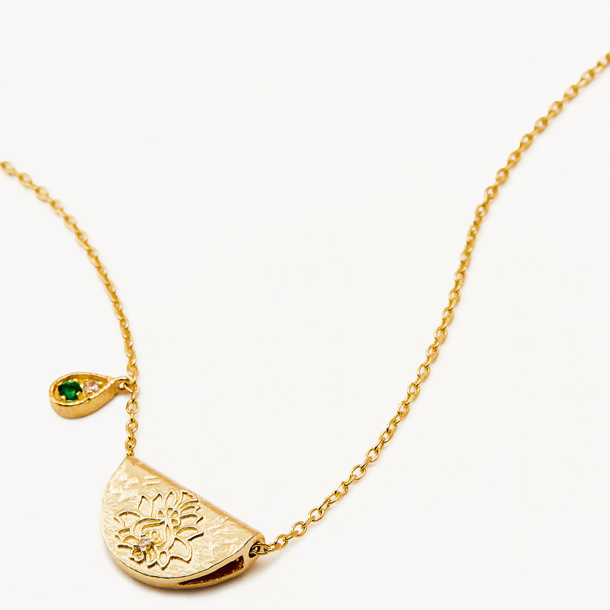 By Charlotte Lotus Birthstone Necklace (May - Emerald), Gold
