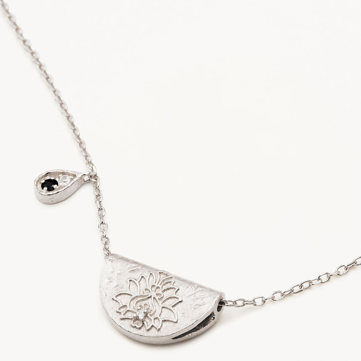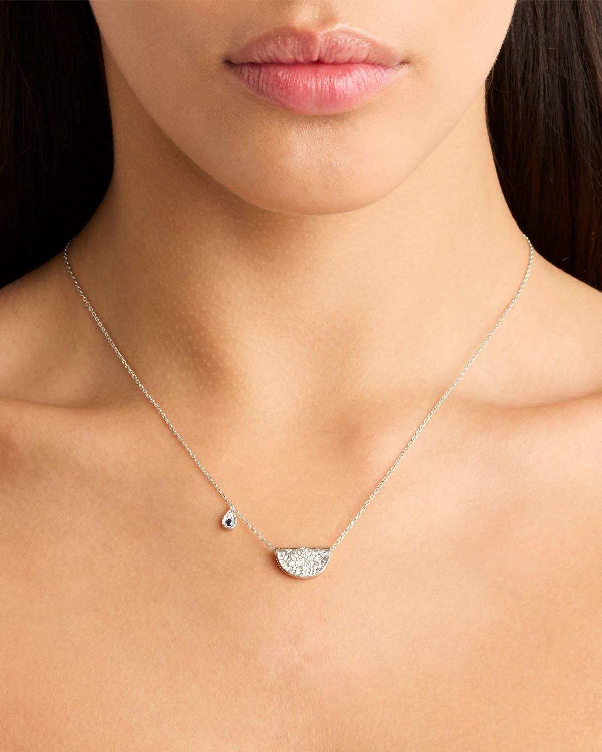 By Charlotte Lotus Birthstone Necklace (September - Sapphire), Silver