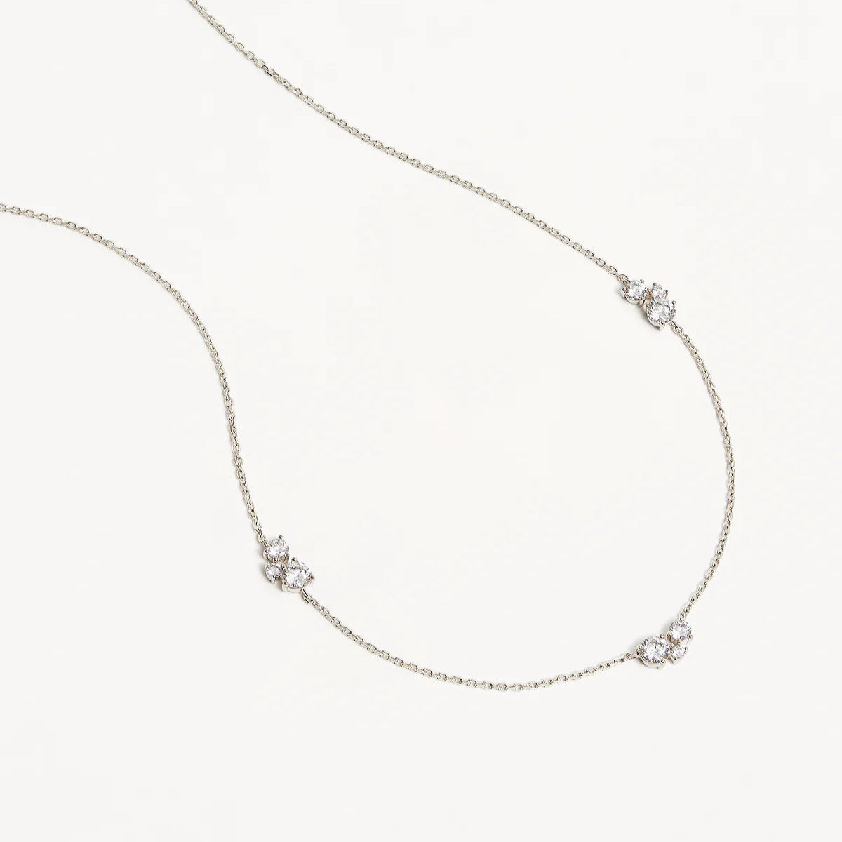 The Whispers of Love Choker features a classic trio design with an asymmetrical twist with varying sizes of round-cut crystals. This piece is a visual poem to the simplicity of love - and all the quiet magic it holds. It’s classic and delicate design is the perfect subtle touch of sparkle for the bride looking to shine in her own light. Designed to be worn shortened and close to the neckline.