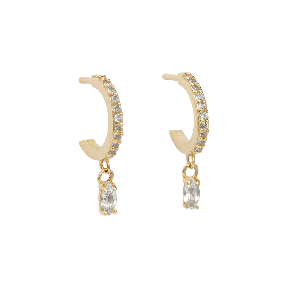 Delicate and refined, the Eternity Drop Hoops are a half hoop shape adorned with crystals featuring a drop style, for a a timeless yet striking way to complete your layering story.