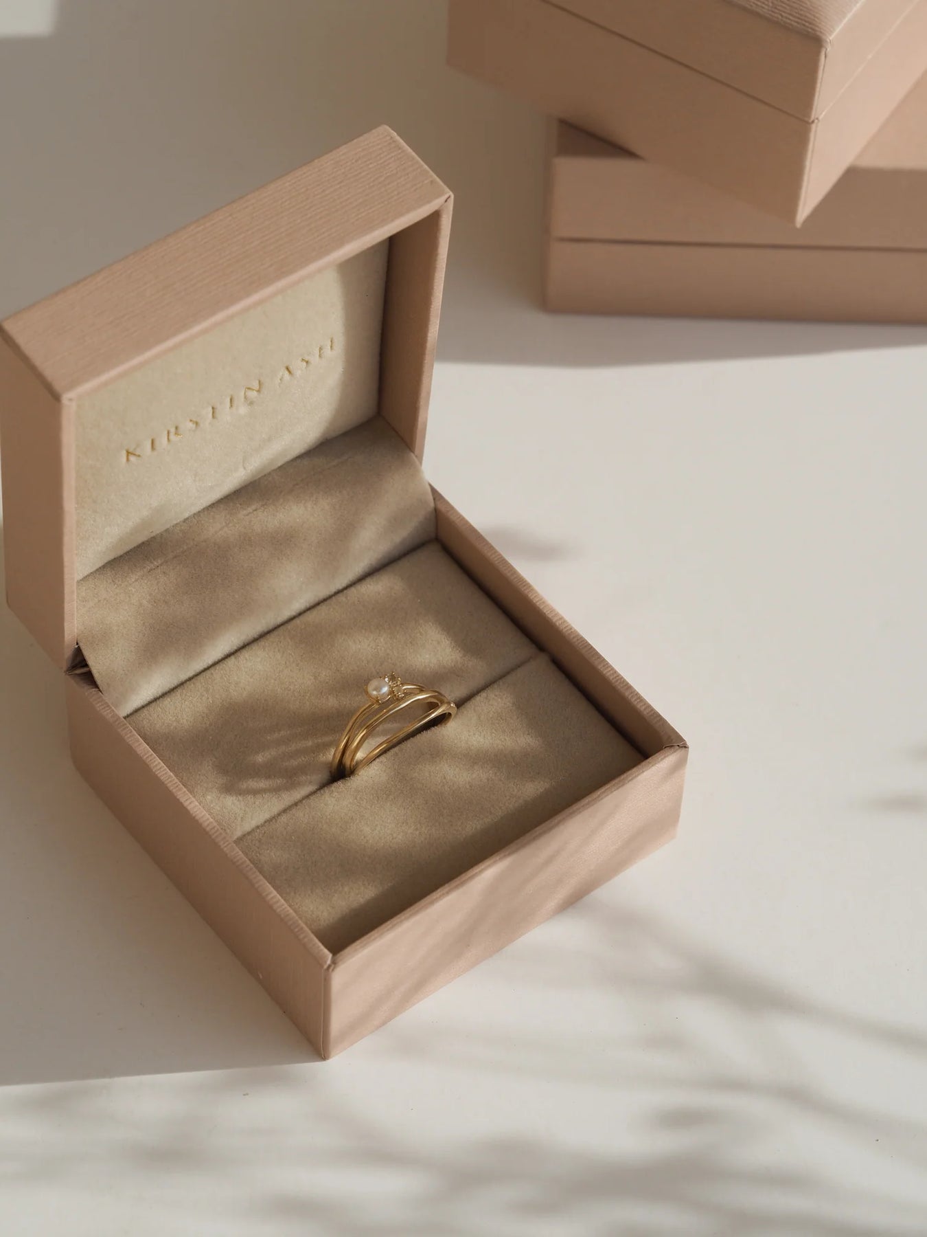 A quiet statement, the Petite Fold Ring is crafted from 9k solid gold and shaped by an organic fold through its form. Designed to wear alone or layered with your favourite gold styles, this piece brings ease and intention to your everyday.