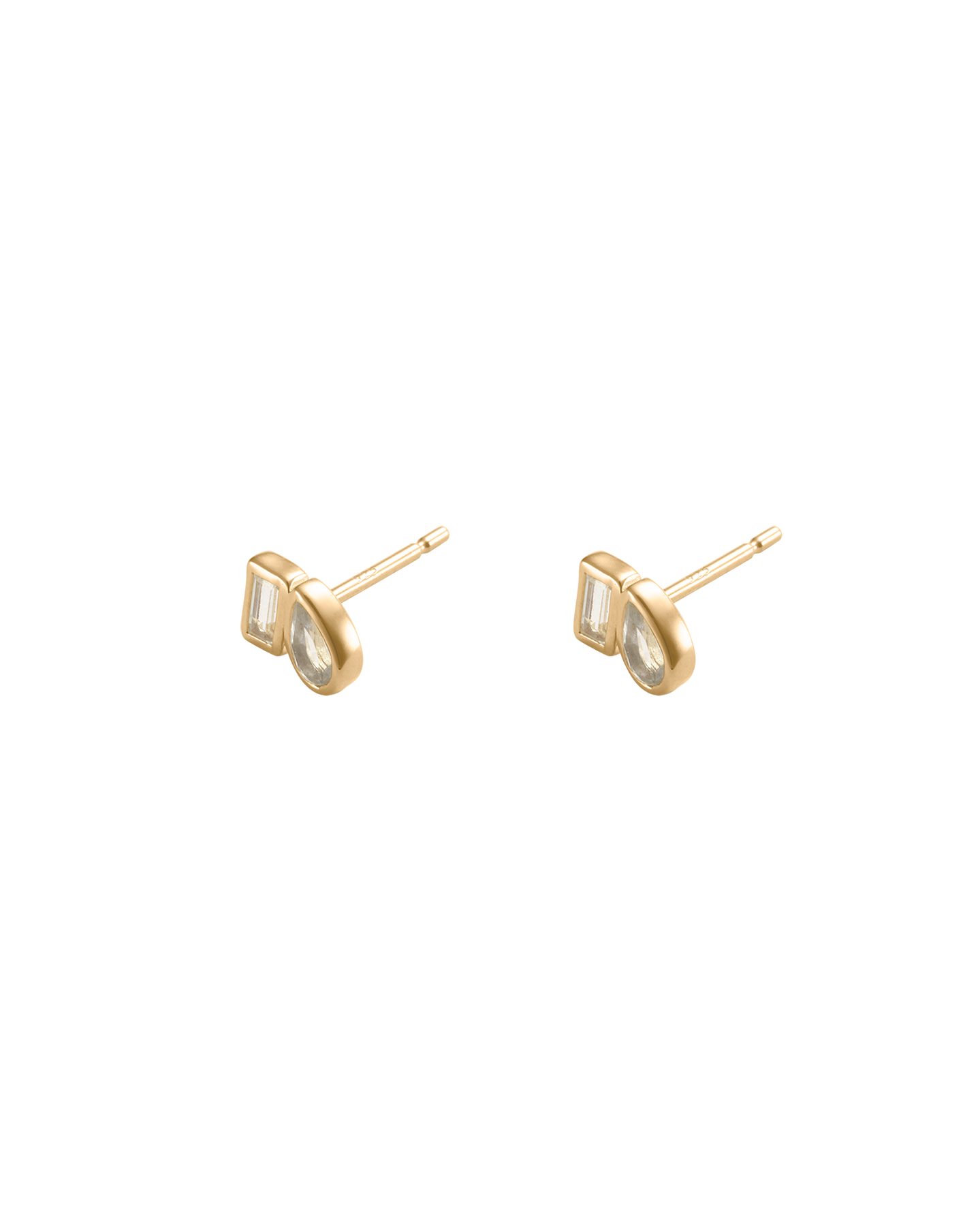 The Place Studs feature two white topaz stones in elegant baguette and pear cuts.