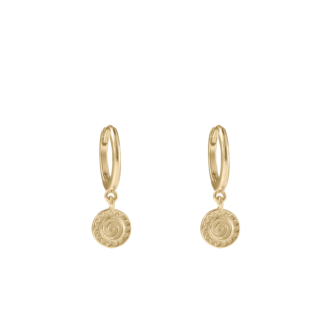 Delicate hoops with a suspended sun motif at the centre, the Solara Hoops honour the sun’s energy.