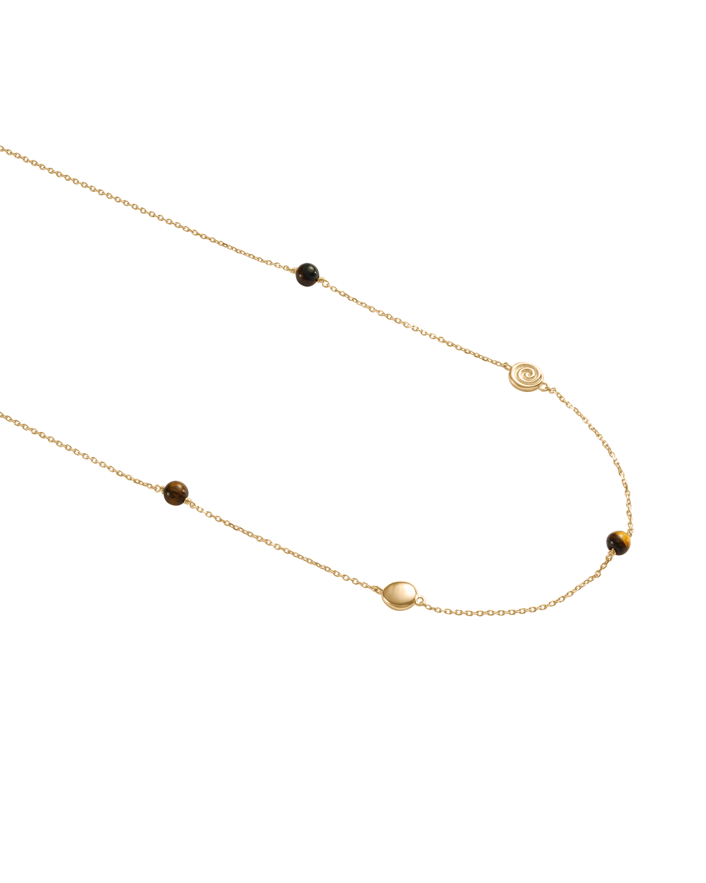 Designed to layer effortlessly with your everyday favourites, the Tempo Tiger’s Eye Necklace features tiger’s eye stones suspended along the centre of an 18k gold vermeil chain.