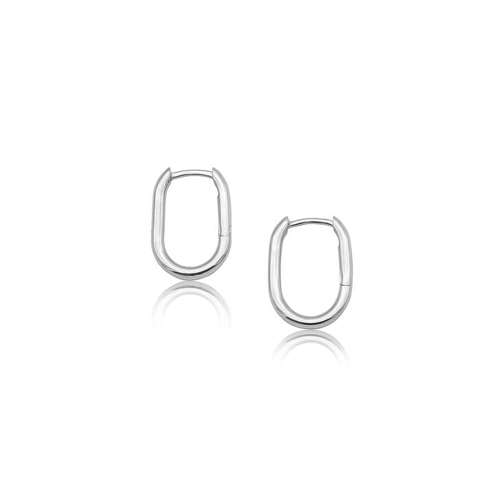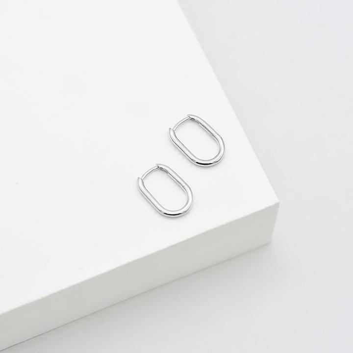 A fine everyday hoop earring that features an oval shape, with a huggie-style closure. Crafted in nickel-free sterling silver with a polished finish.