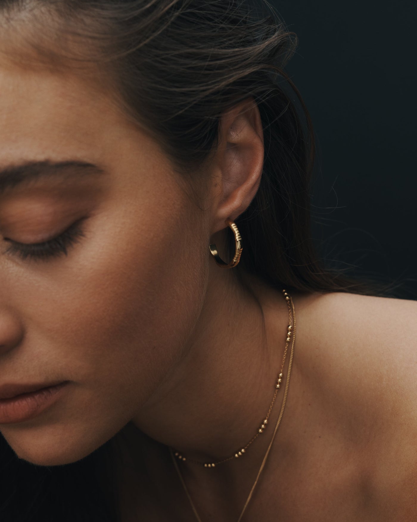 Crafted from 18k gold vermeil, the Amari Hoops are mid-sized open hoop earrings with a contoured form.