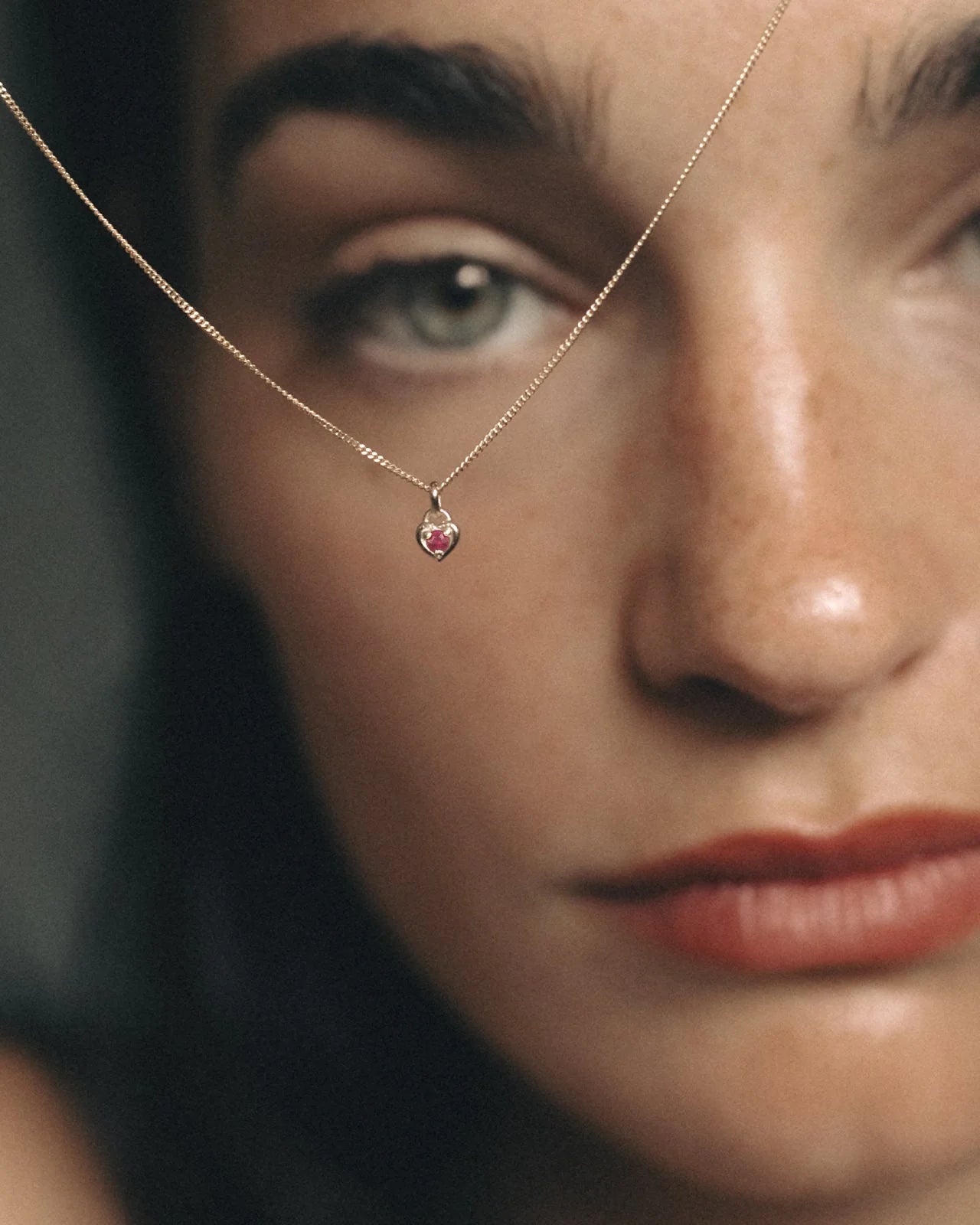 Inspired by love's eternal glow, this delicate ruby necklace celebrates new beginnings.