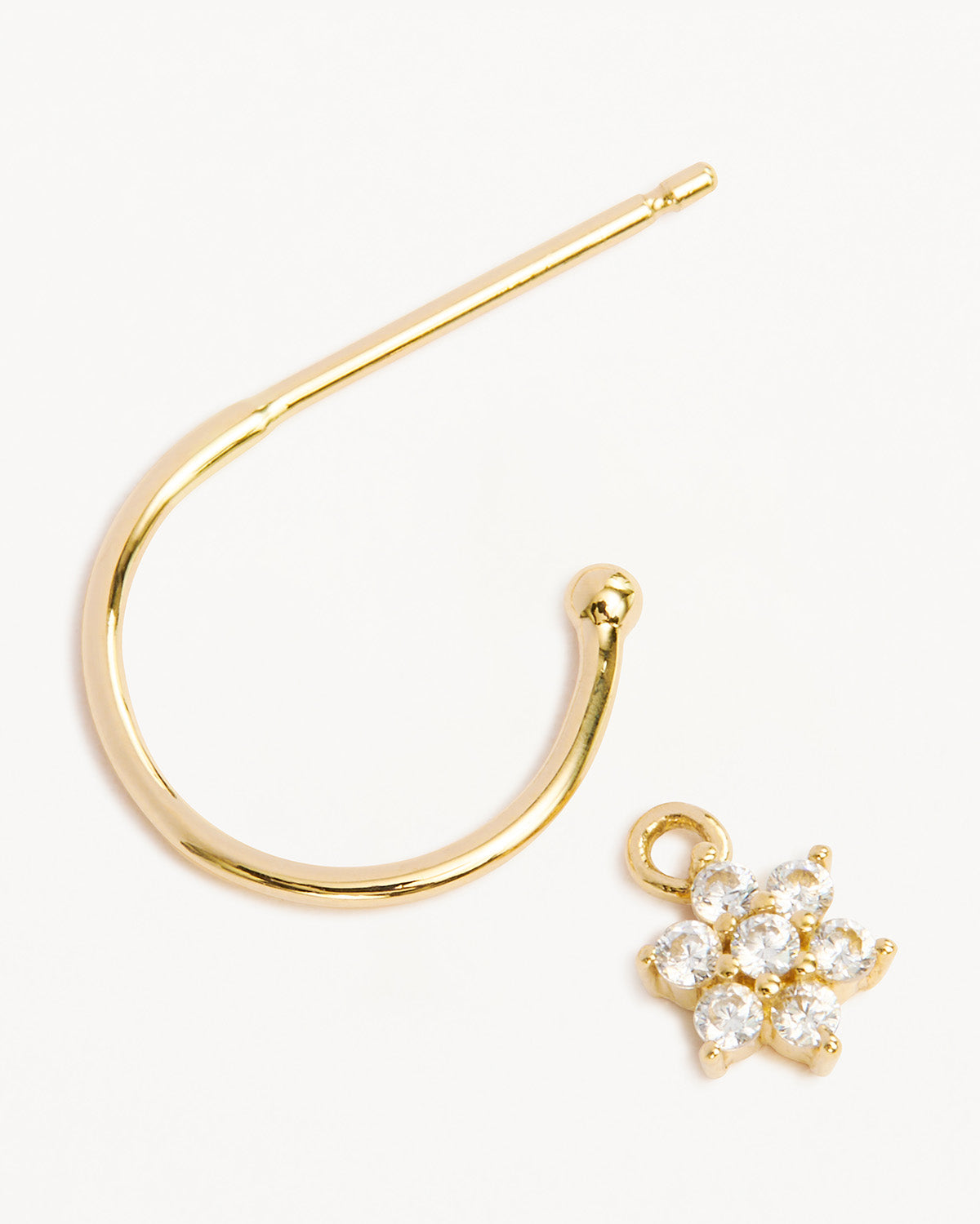 Adorn yourself with the By Charlotte 14k Gold Crystal Lotus Flower Single Hoop; the pure white Lotus sends a message of grace and love, allowing oneself to develop inner peace.