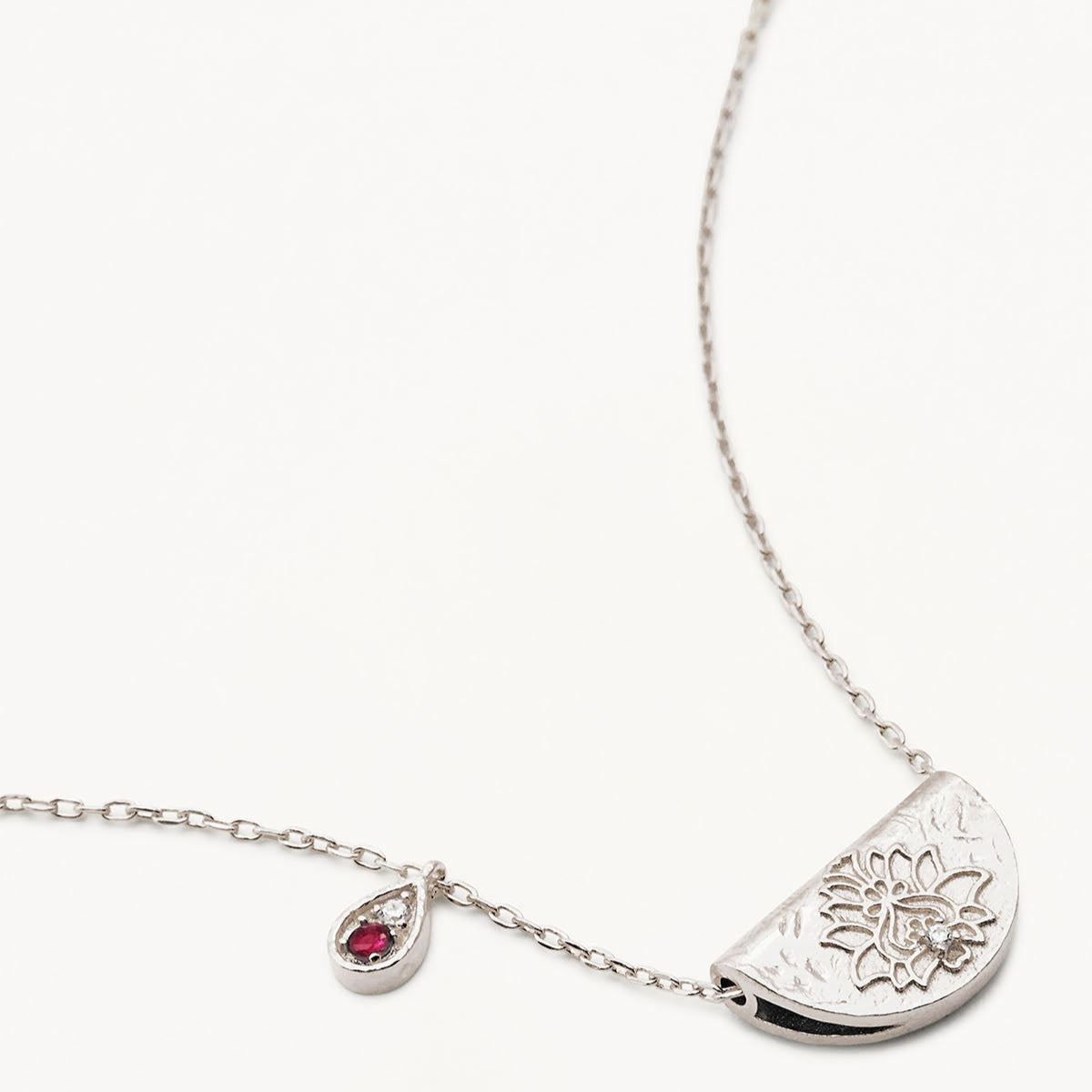 By Charlotte Lotus Birthstone Necklace (July - Ruby), Silver
