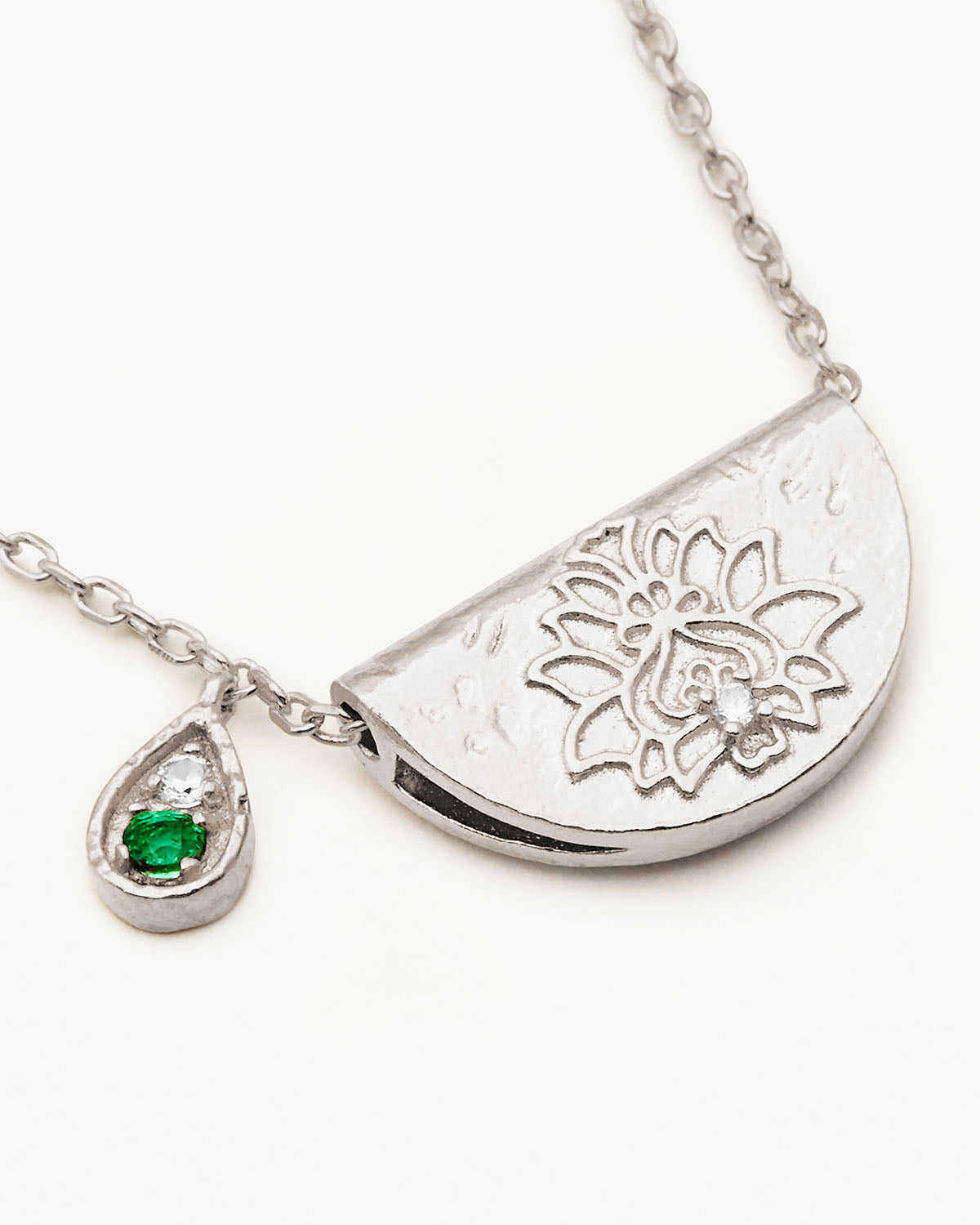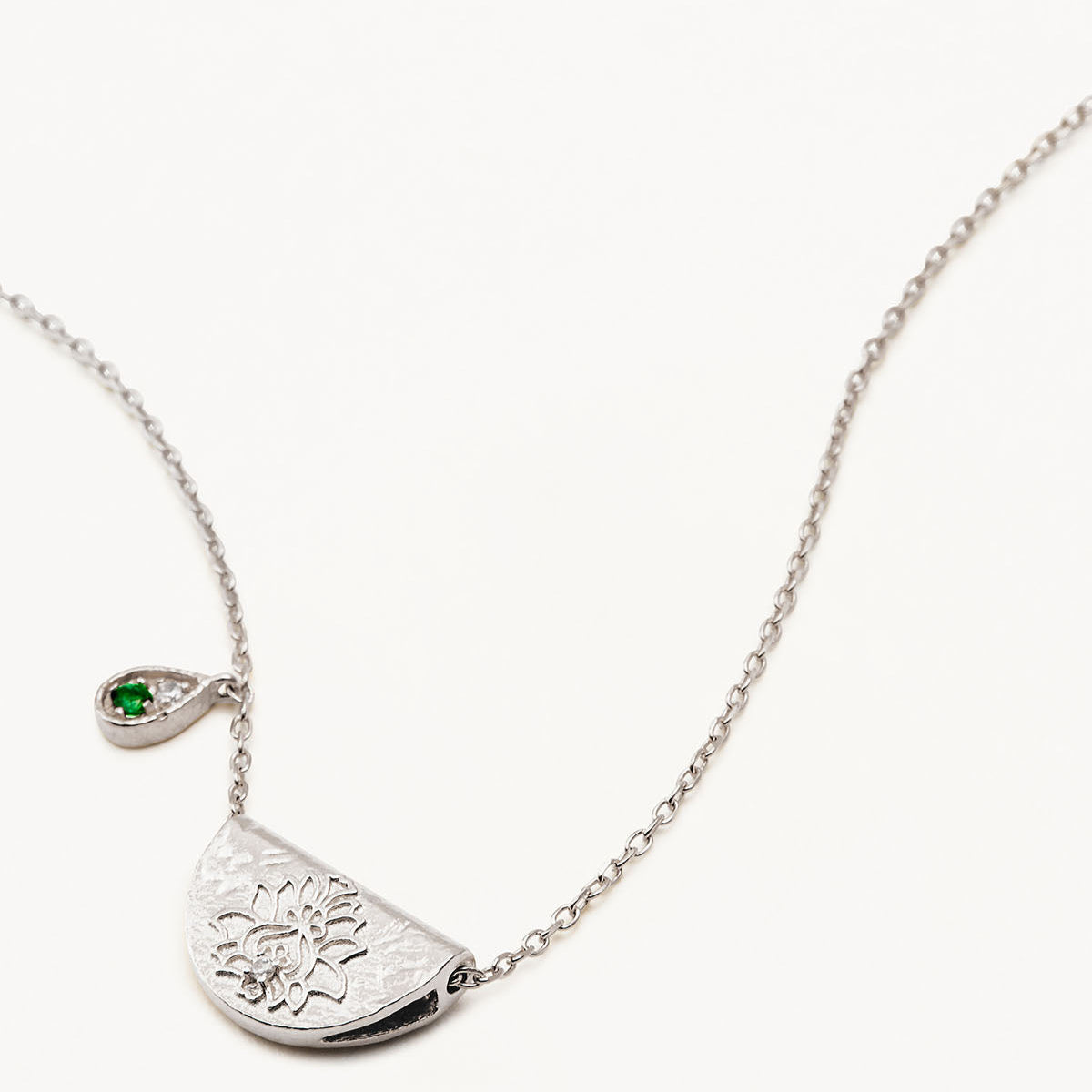 By Charlotte Lotus Birthstone Necklace (May - Emerald), Silver