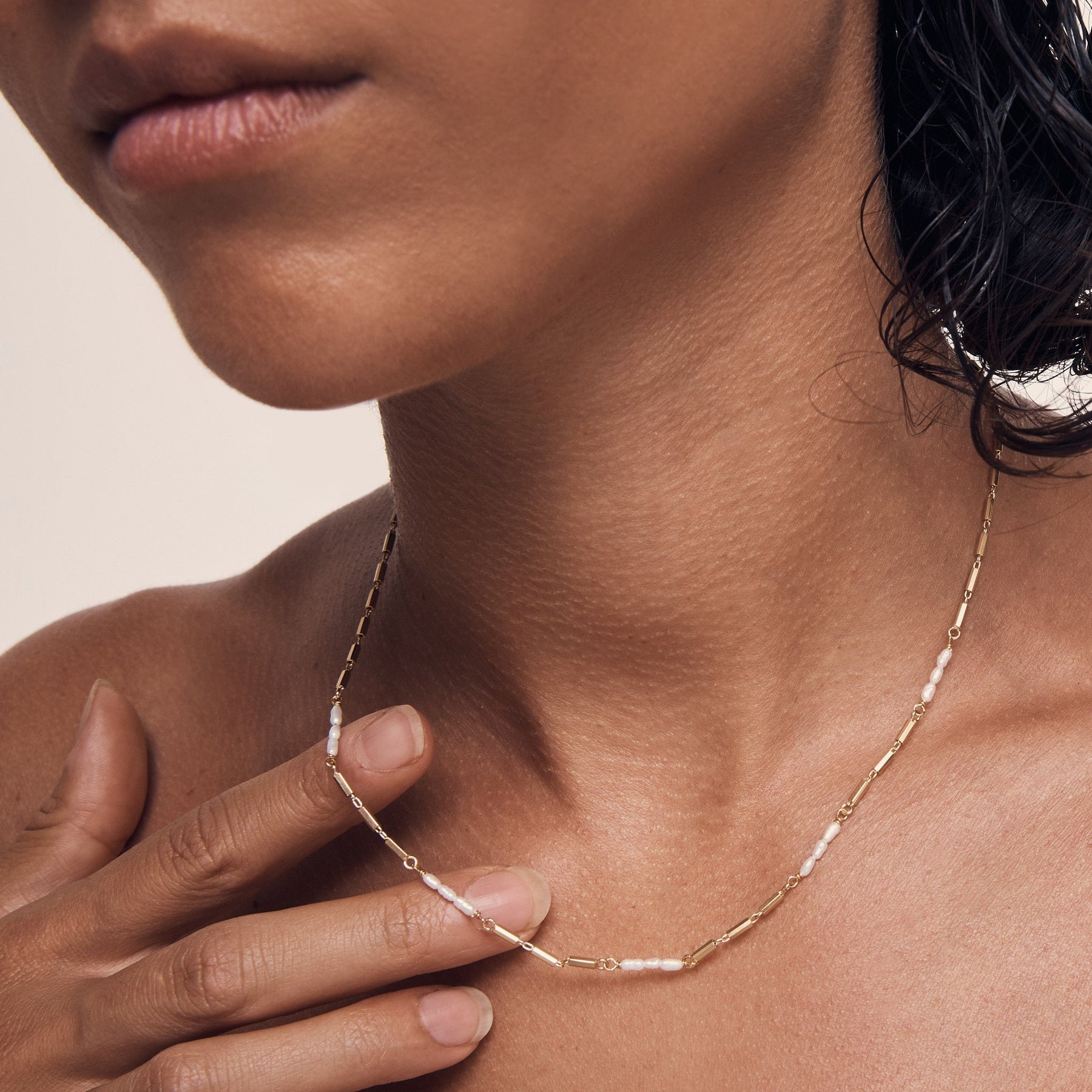 The Riviera Necklace Pearl carries the essence of the waves calming rhythm.