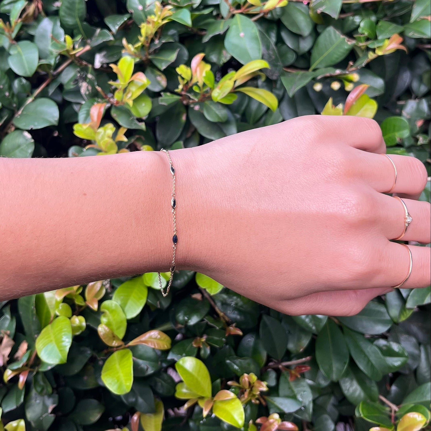 The Lucia Marquise Bracelet in Sapphire is an elevated Temple of the Sun interpretation of their classic gemstone bracelet chain style.